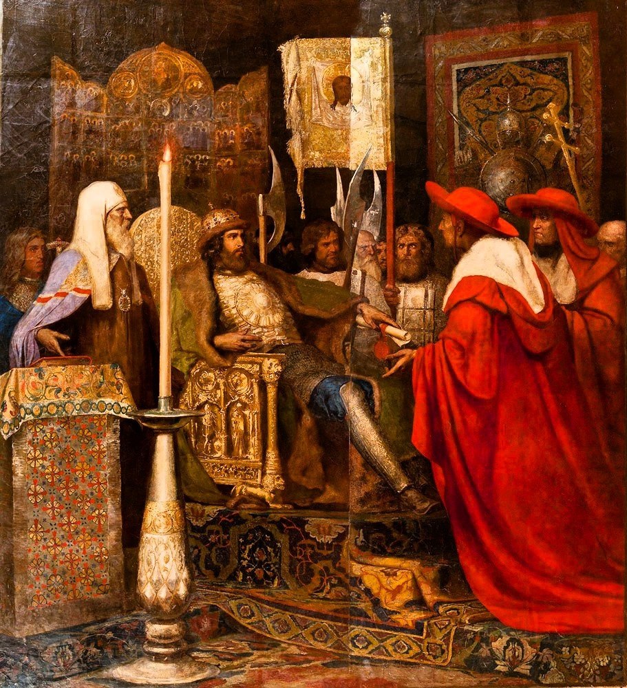 ###Иван III Великий Во второй половине XV в. главенство Москвы стало признаваться во всей христианской Руси. Иван III (1462–1505), которого называют Иваном Великим, провозгласил себя «милостью Божьей великим князем всея Руси». Когда император Фридрих III предложил ему королевскую корону, Иван ответил: «Мы божиею милостью государи на своей земле изначала, от первых своих прародителей, а поставление имеем от Бога, как наши прародители, так и мы. Молим Бога, чтобы нам и детям нашим дал до века так быть, как мы теперь государи на своей земле, а поставления как прежде ни от кого не хотели, так и теперь не хотим». Иван требовал титула императора, на что Фридрих не согласился. Иван проводил политику полного подчинения себе прочих русских князей. К числу самых значительных его успехов относится присоединение Новгорода в 1478 г. – город утратил самостоятельность и управлялся отныне великокняжеским наместником. Почти семьдесят знатных новгородских фамилий были выселены из города и получили новые поместья в удаленных местах. Для великого князя Московского присоединение Новгорода с его богатой торговлей и обширными территориальными владениями означало принципиальное усиление своего положения, богатства и влияния. Но было ли падение единственного независимого города-государства выгодно для Руси в целом – это весьма спорный вопрос. С Новгородом исчез последний противовес московской автократии, которая не встречала серьезного противодействия вплоть до XX в. и в конечном счете сменилась другой автократией еще худшего свойства. [Записки о Средневековье](https://t.me/medievalnotes)