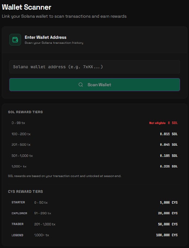 ###**2 простые активности без депозита в сети Solana - забираем бесплатный ****$SOL**** и ****$CYS** 🚀 Друзья, если вы активно пользовались сетью Solana, у вас почти наверняка есть залоченная комиссия за созданные контракты. В среднем выходит около $0.14 в $SOL за один контракт. Сумма кажется небольшой, но если контрактов десятки - в итоге набегает вполне приятно. Забрать средства можно через [GetMySol](https://getmysol.io/?ref=023CA129) - подключаете кошелёк, проверяете доступный баланс к возврату и клеймите $SOL. Дополнительно там можно сжечь ненужные токены и NFT, но обязательно всё перепроверяйте, чтобы случайно не удалить что-то ценное. Также есть простая бесплатная активность от ClaimMyShare - это протокол репутации кошельков в сети Solana. 📊 **За активность вашего адреса начисляют токены ****$CYS**** и немного ****$SOL****.** 🔵 На раздачу выделено 70% токенов 🔵 Без локов 🔵 TGE запланировано на Q2 2026 🔵 Ничего подключать не нужно - только скан адреса **❓**** Что нужно сделать:** 🟢 Зарегистрироваться по [ссылке](https://claimyshare.io/?ref=C9AB0F99) 🟢 Перейти в раздел Wallet Scanner 🟢 Вставить адрес Solana и просканировать его 🟢 Забрать ~20 000 - 50 000 $CYS 🟢 Открыть 5 боксов в разделе Mystery Box 🟢 В разделе Dashboard отслеживать баланс 🟢 В Settings привязать почту Есть раздел Tasks с социальными заданиями - задание со скачиванием стороннего кошелька лучше пропустить. ℹ️ **Обещают раздать во втором квартале:** 🟢 $SOL - после завершения первого сезона 🟢 $CYS - на TGE во втором квартале 2026 **В целом обе активности бесплатные, занимают всего несколько минут и подойдут тем, кто уже пользуется Solana. Если вы и так в экосистеме - логично забрать то, что дают.** [Proxy-Seller](https://proxy-seller.com/ua/?partner=KQ732SMHSNKDR0) - с промокодом `MUTIM` - 15% скидки на IPv4, IPv6, ISP, 39% на Резидентские и 10% на Мобильные прокси ℹ️ [**Актуальные проекты на отработку** ](https://t.me/investhai5/3301) ℹ️ Мутим на крипте | [Чат](https://t.me/+xJ1J7HLZLBI4MjQy) | [Youtube](https://www.youtube.com/@mutim_na_crypte) | [Teletype](https://teletype.in/@kappaclout) | [Trustee](https://trusteeglobal.com/ru/?r=TDVOMP4IgEb) | [BingX](https://bingx.com/partner/MutimNaCrypte/1i37yr) |