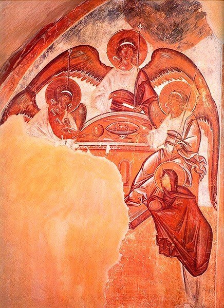 ###Церковь Спаса Преображения в Новгороде — первая работа Феофана Грека на Руси: мастер расписывает храм, построенный на Ильине улице в 1374 году. Сведения о его биографии дает Епифаний Премудрый в одном из писем: «…Родом грек, книги изограф нарочитый и среди иконописцев отменный живописец». Экспрессивность, эскизность стиля Феофана скопируют новгородские мастера — современники. В последующие годы «гречанин» вместе с Андреем Рублевым и Прохором из Городца распишет московские кремлевские соборы. Фрески в Новгороде станут единственной сохранившейся монументальной работой мастера. [Записки о Средневековье](https://t.me/medievalnotes)